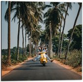 WallClassics - Dibond - Couple sur un scooter jaune - 100x50 cm Photo sur aluminium (Décoration murale en métal)