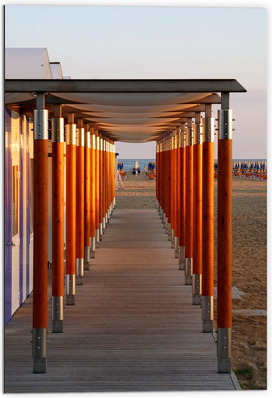 WallClassics - Dibond - Échafaudage sur la plage - Photo sur aluminium 70x105 cm (avec système de suspension)