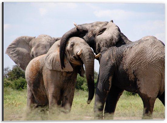 WallClassics - Dibond - Éléphants enlacés - Photo 40x30 cm sur Aluminium (Avec Système d'accrochage)