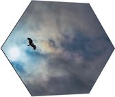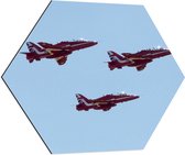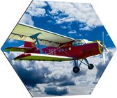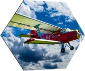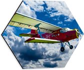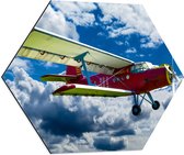 WallClassics - Dibond Hexagone - Avion rouge/jaune dans des champs de nuages - 70x60,9 cm Photo sur Hexagone (avec système de suspension)