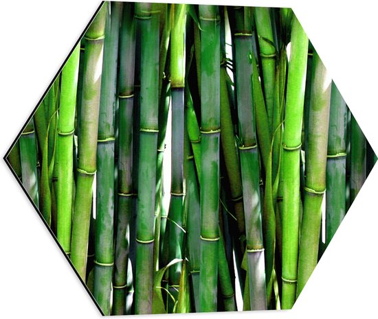 WallClassics - Dibond Hexagone - Branches de Bamboe Vert Ensemble - 50x43,5 cm Photo sur Hexagone (Avec Système de Suspension)