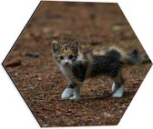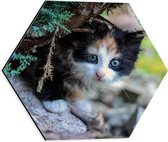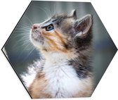 WallClassics - Dibond Hexagone - Chaton regardant dans l'appareil photo - 40x34,8 cm Photo sur Hexagone (avec système d'accrochage)