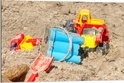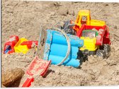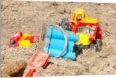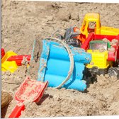 WallClassics - Dibond - Jouets dans le bac à sable - 90x60 cm Photo sur Aluminium (Décoration murale en métal)