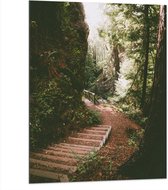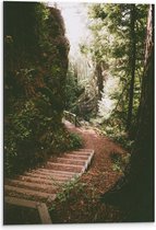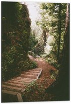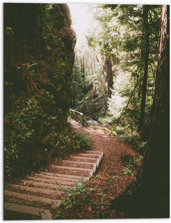 WallClassics - Dibond - Marches en Bois dans une Forêt Dense - Photo 60x80 cm sur Aluminium (Avec Système d'accrochage)