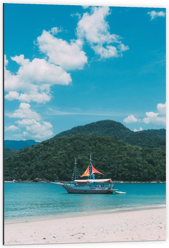 WallClassics - Dibond - Navire sur une mer bleue claire - 60x90 cm Photo sur aluminium (Décoration murale en métal)