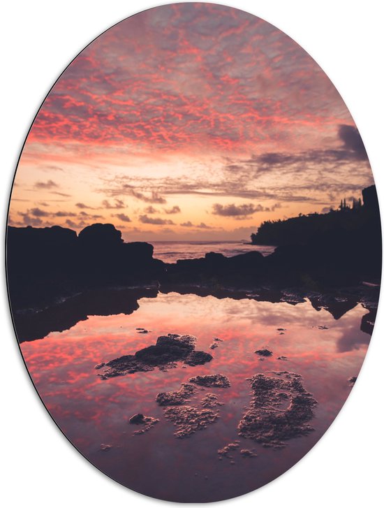 WallClassics - Dibond Oval - Klein Lac face à l'Océan Pacifique au Soleil Couchant - 72x96 cm Photo sur Ovale (avec système d'accrochage)