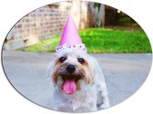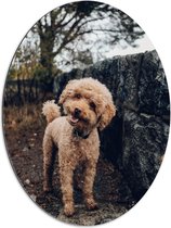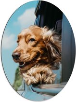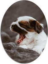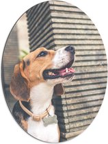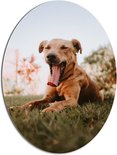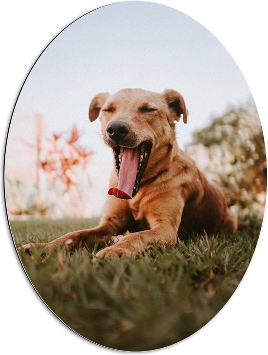 WallClassics - Dibond Ovale - Chien brun bâillant - Photo 60x80 cm sur ovale (avec système de suspension)