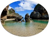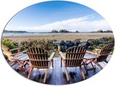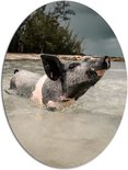 WallClassics - Dibond Ovale - Cochon profitant de la mer - Photo 81x108 cm sur ovale (avec système de suspension)
