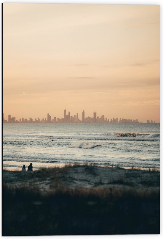 WallClassics - Dibond - Personnes marchant sur la plage - Photo sur aluminium 70x105 cm (avec système de suspension)