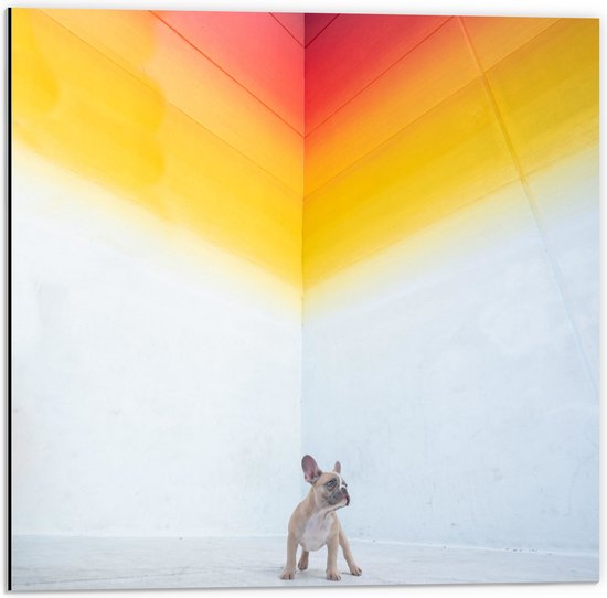 WallClassics - Dibond - Puppy sous Rainbow Street Art - 50x50 cm Photo sur Aluminium (Décoration murale en métal)