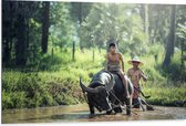 WallClassics - Dibond - Toboggan Jaune avec Water Courante - 105x70 cm Photo sur Aluminium (Décoration murale métal)