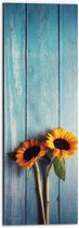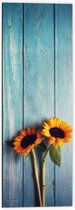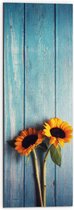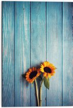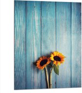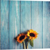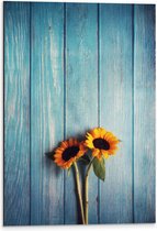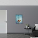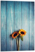 WallClassics - Dibond - Tournesols avec Clôture Bleue - Photo 60x80 cm sur Aluminium (Avec Système d'accrochage)