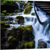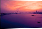 WallClassics - Dibond - Très Long Pont sur l' Water vers la Ville - Photo 80x80 cm sur Aluminium (Avec Système d'accrochage)