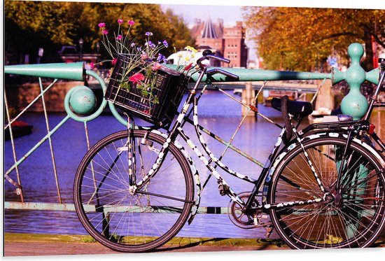WallClassics - Dibond - Vélo Garé sur Pont - Photo 105x70 cm sur Aluminium (Avec Système d'accrochage)