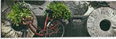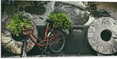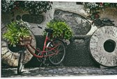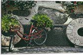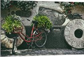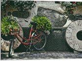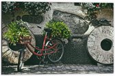 WallClassics - Dibond - Vélo rouge décoré de Plantes contre mur de pierre - Photo 40x30 cm sur aluminium (avec système d'accrochage)