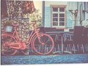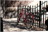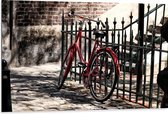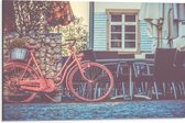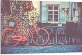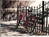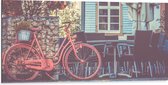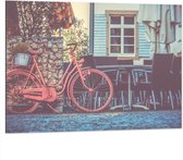 WallClassics - Dibond - Vélo rouge garé sur une terrasse - Photo 80x60 cm sur aluminium (avec système d'accrochage)