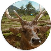 WallClassics - Cercle mural Dibond - Cerf en gros plan - Photo 60x60 cm sur cercle mural en aluminium (avec système d'accrochage)
