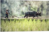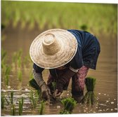 WallClassics - Drapeau - Agriculteur asiatique cueillant du riz - Photo 40 x 120 cm sur drapeau en polyester