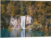 WallClassics - Drapeau - Belle Cascade dans la Forêt - 80x60 cm Photo sur Drapeau Polyester