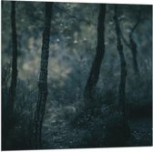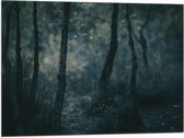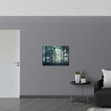 WallClassics - Drapeau - Brouillard dans une forêt sombre - 80x60 cm Photo sur Drapeau Polyester