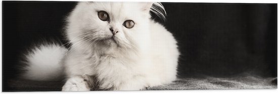 WallClassics - Drapeau - Chat Witte sur Fond Noir - Photo 90x30 cm sur Drapeau Polyester