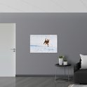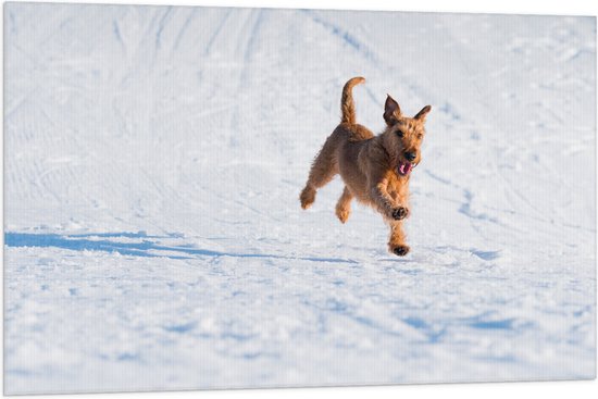 WallClassics - Drapeau - Chien marron courant dans la neige - 105x70 cm Photo sur drapeau polyester