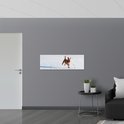 WallClassics - Drapeau - Chien marron courant dans la neige - 120x40 cm Photo sur drapeau polyester