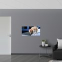 WallClassics - Drapeau - Chien renifleur beige - 100x50 cm Photo sur drapeau polyester