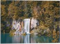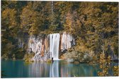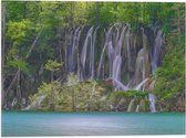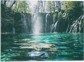 WallClassics - Drapeau - Chute d'eau de la forêt dans un lac - Photo 40x30 cm sur drapeau en polyester