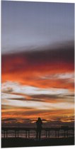 WallClassics - Drapeau - Ciel Wit/ Oranje au-dessus d'une jetée en bord de mer - Photo sur drapeau polyester 50 x 100 cm