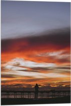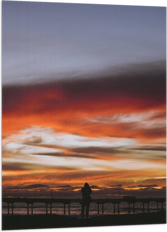 WallClassics - Drapeau - Ciel Wit/ Oranje au-dessus d'une jetée en bord de mer - Photo 50 x 75 cm sur drapeau en polyester