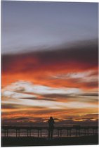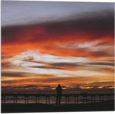 WallClassics - Drapeau - Ciel Wit/ Oranje au-dessus d'une jetée en bord de mer - Photo sur drapeau polyester 50 x 100 cm