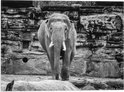 WallClassics - Drapeau - Éléphant au zoo - Zwart et Wit - Photo 40x30 cm sur drapeau polyester