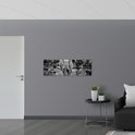 WallClassics - Drapeau - Éléphant au zoo Zwart - Wit - 120x40 cm Photo sur Drapeau Polyester