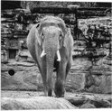 WallClassics - Drapeau - Éléphant au zoo Zwart - Wit - 50x50 cm Photo sur Drapeau Polyester