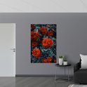 WallClassics - Drapeau - Fleurs pleines rouges dans un buisson vert foncé - 100 x 150 cm Photo sur drapeau en polyester