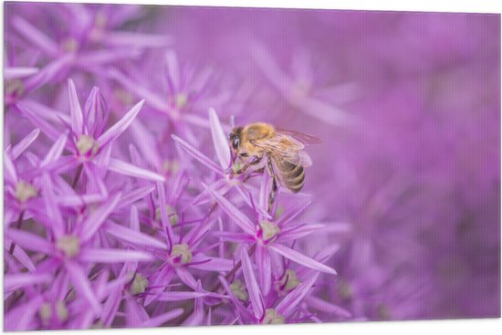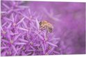 WallClassics - Drapeau - Fleurs Violettes avec Abeille - 105x70 cm Photo sur Drapeau Polyester