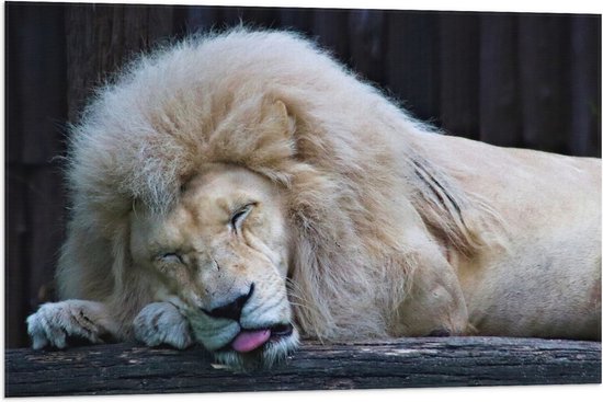 WallClassics - Drapeau - Lion Witte Endormi - 90x60 cm Photo sur Drapeau Polyester