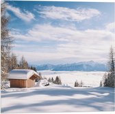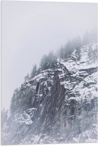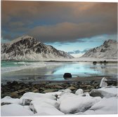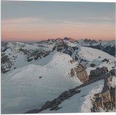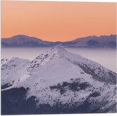 WallClassics - Drapeau - Montagnes enneigées dans la brume - Photo 50x50 cm sur drapeau polyester