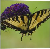 WallClassics - Drapeau - Papillon sur Fleurs Violettes - 50x50 cm Photo sur Drapeau Polyester