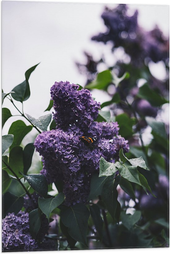 WallClassics - Drapeau - Papillon sur Bloem Violette - 50x75 cm Photo sur Drapeau Polyester
