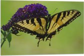 WallClassics - Drapeau - Papillon Jaune / Noir sur Bloem Violette - 75x50 cm Photo sur Drapeau Polyester