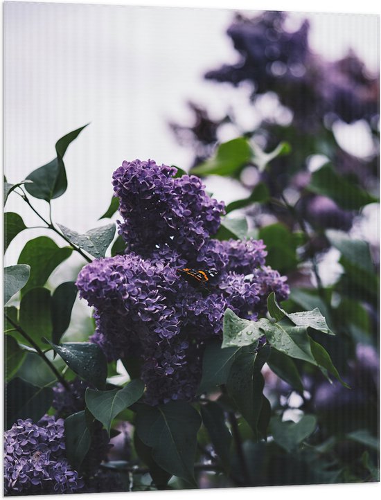 WallClassics - Drapeau - Papillon sur Fleurs Violettes - 75x100 cm Photo sur Drapeau Polyester