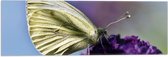 WallClassics - Drapeau - Papillon Witte sur Bloem Violette - 75x50 cm Photo sur Drapeau Polyester