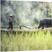 WallClassics - Drapeau - Paysan asiatique cueille du riz - Photo 50x100 cm sur drapeau polyester