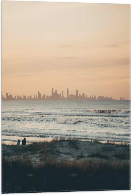 WallClassics - Drapeau - Personnes marchant le long de la plage - Photo 50x75 cm sur drapeau en polyester