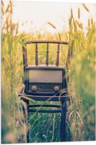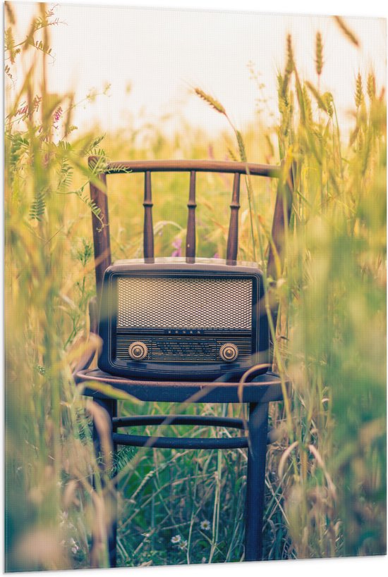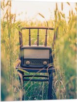 WallClassics - Drapeau - Radio à l'ancienne sur chaise - 80x120 cm Photo sur drapeau en polyester
