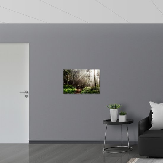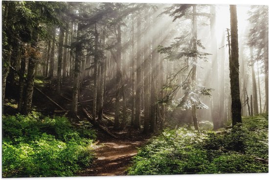 WallClassics - Drapeau - Rayons de soleil entre Arbres fins - Photo 75x50 cm sur drapeau en polyester