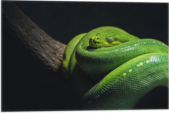 WallClassics - Drapeau - Serpent Python Arbre Vert sur Branche - Photo 60x40 cm sur Drapeau Polyester