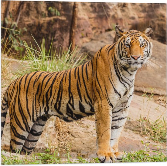 WallClassics - Drapeau - Tigre Regardant - 50x50 cm Photo sur Drapeau Polyester